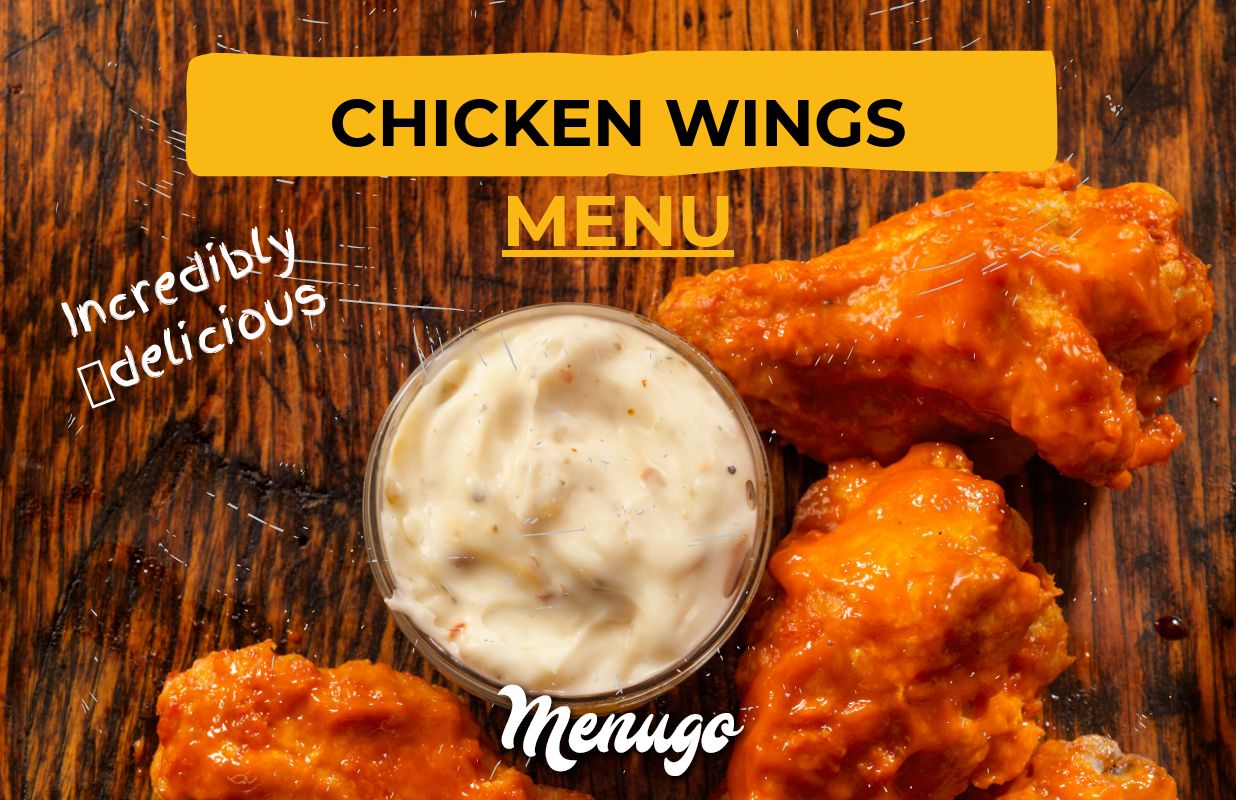 View Chicken Wings Menu US. Only our new template for your restaurant! Juicy appetizing photos of juicy wings will not leave your customers.